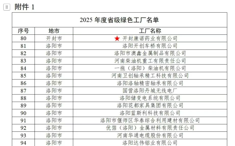 開封康諾藥業獲評“2025年度省級綠色工廠”